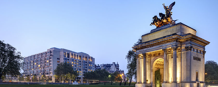 The InterContinental London Park Lane is located at 1 Hamilton Place, Park Lane, London W1J 7QY, close to Hyde Park Corner.