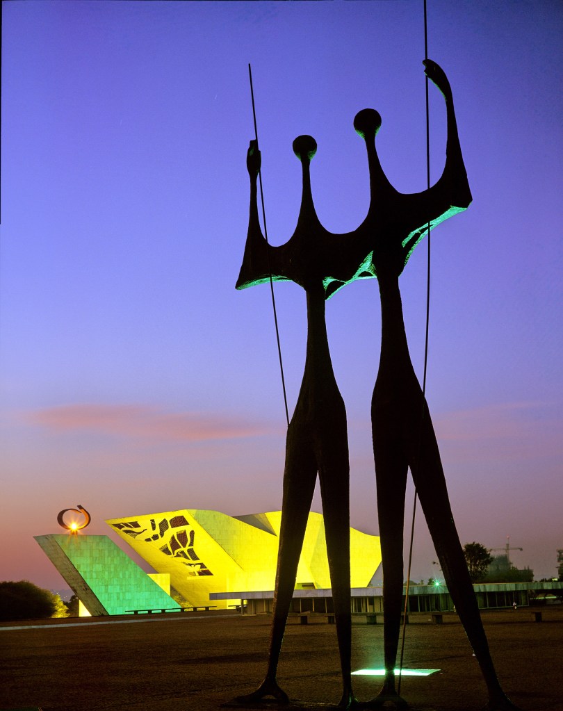 00611 Published April 15, 2012 at 1962 × 2480 in Brasília A escultura Os Guerreiros de Bruno Giorgi, mais conhecido como Os Dois Candangos, é considerado um símbolo de Brasília. Brasília (DF). 1999. Foto: Christian Knepper / Embratur *** Local Caption *** –